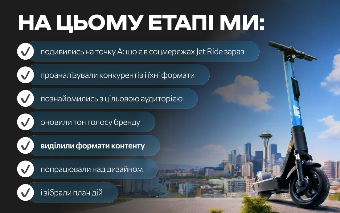 Тому для Jet Ride ми зібрали колесо контент-балансу — систему, де кожен формат відіграє свою роль, аби РАЗОМ вони допомагали досягати головних цілей.