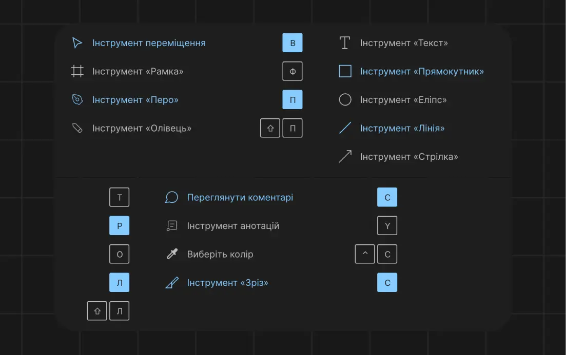 Гарячі клавіші Figma