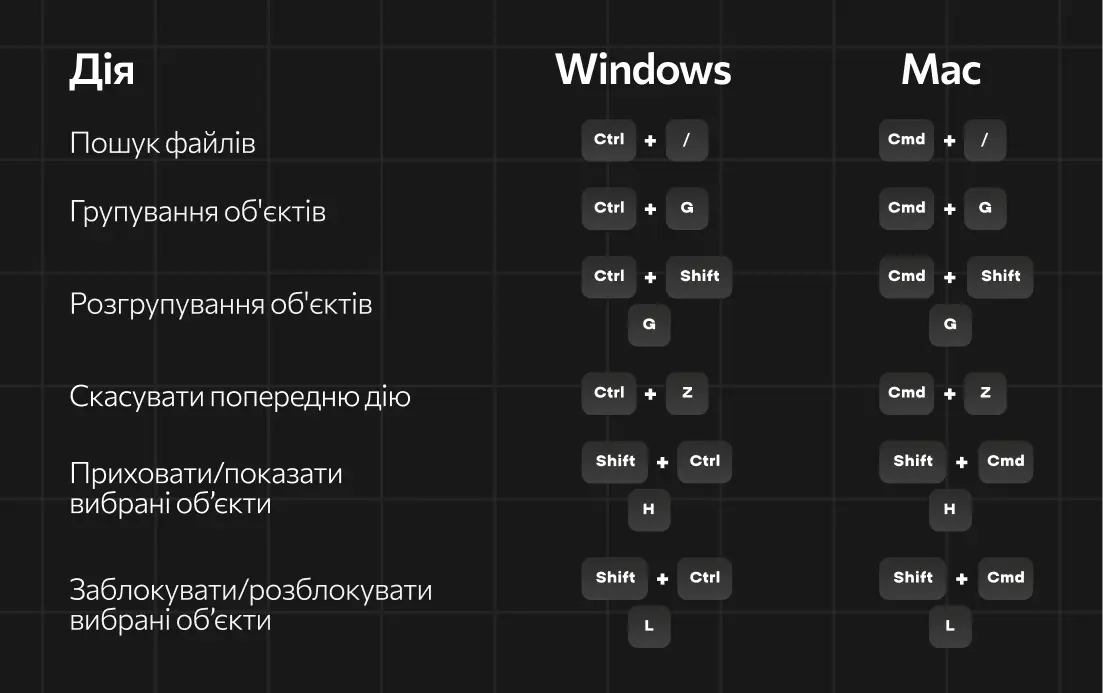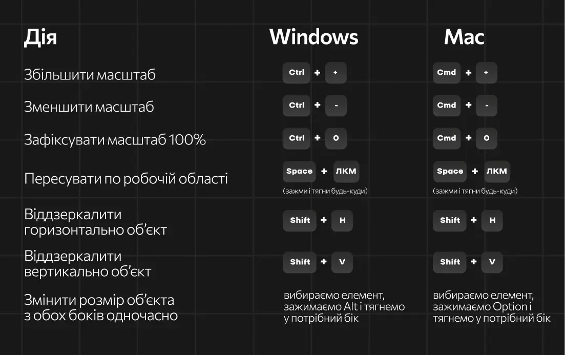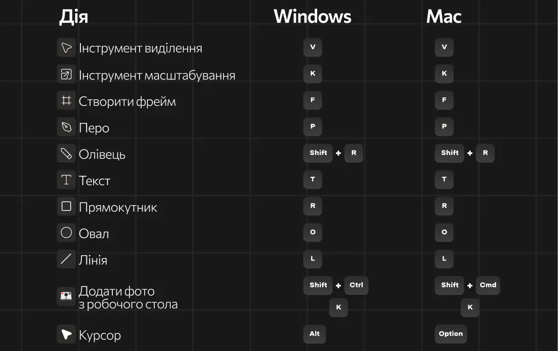 Спойлер: тут лишили гарячі кнопки Figma як для компуктерів на Windows, так і macOS