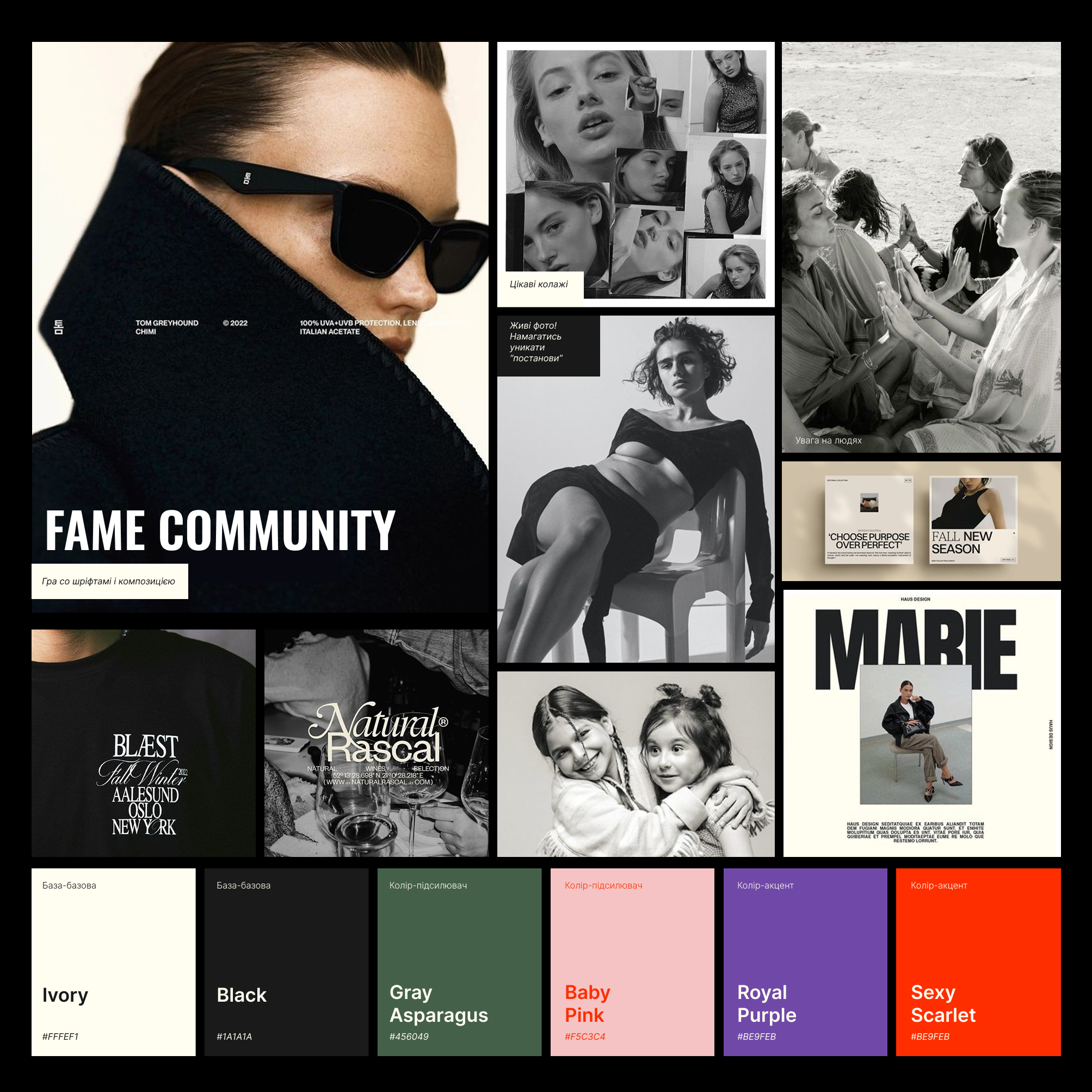 Одразу розгляньмо мудборд-натхення для створення фірмового стилю.