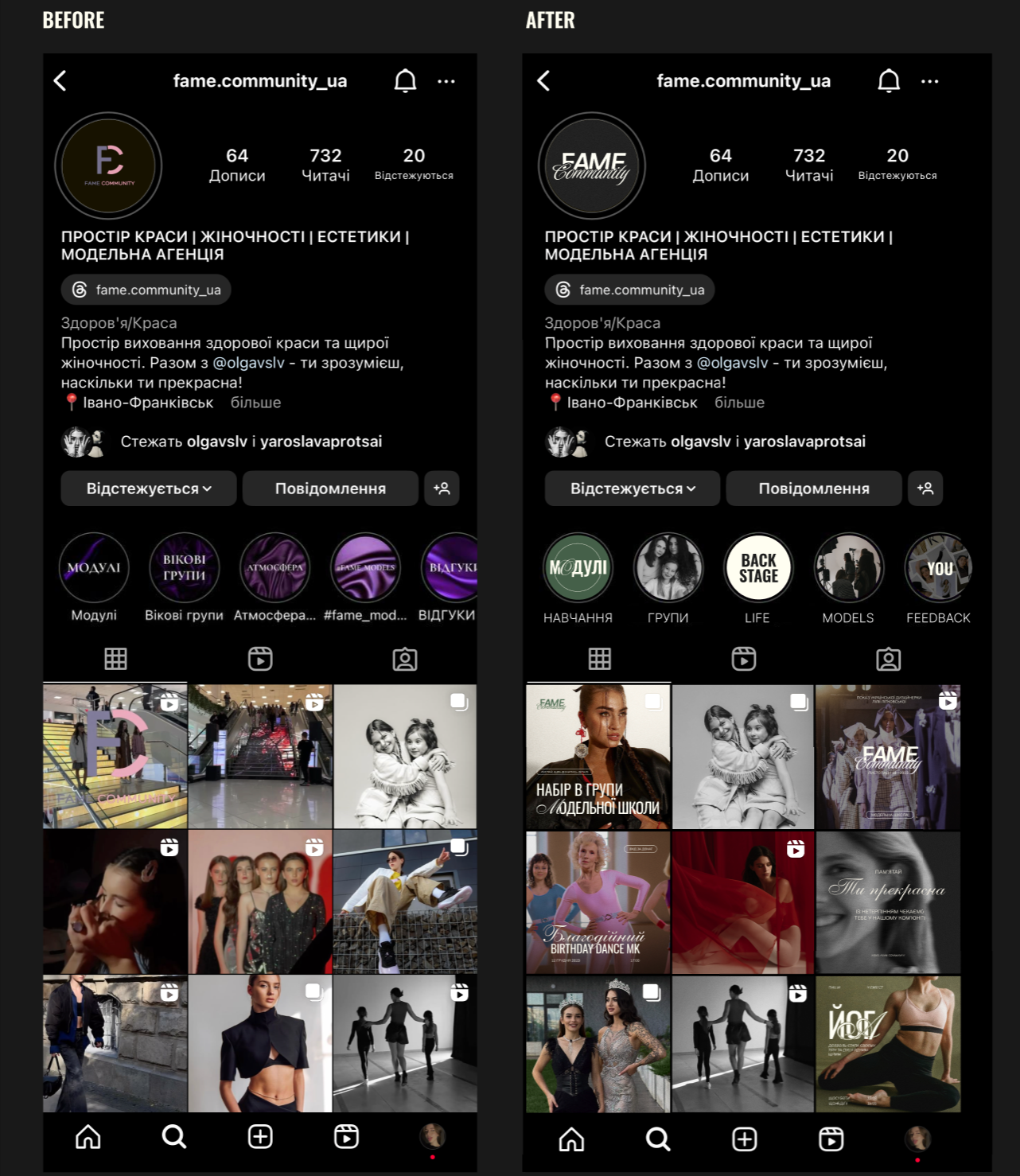 Далі у нас оформлення профілю «ДО» і «ПІСЛЯ».