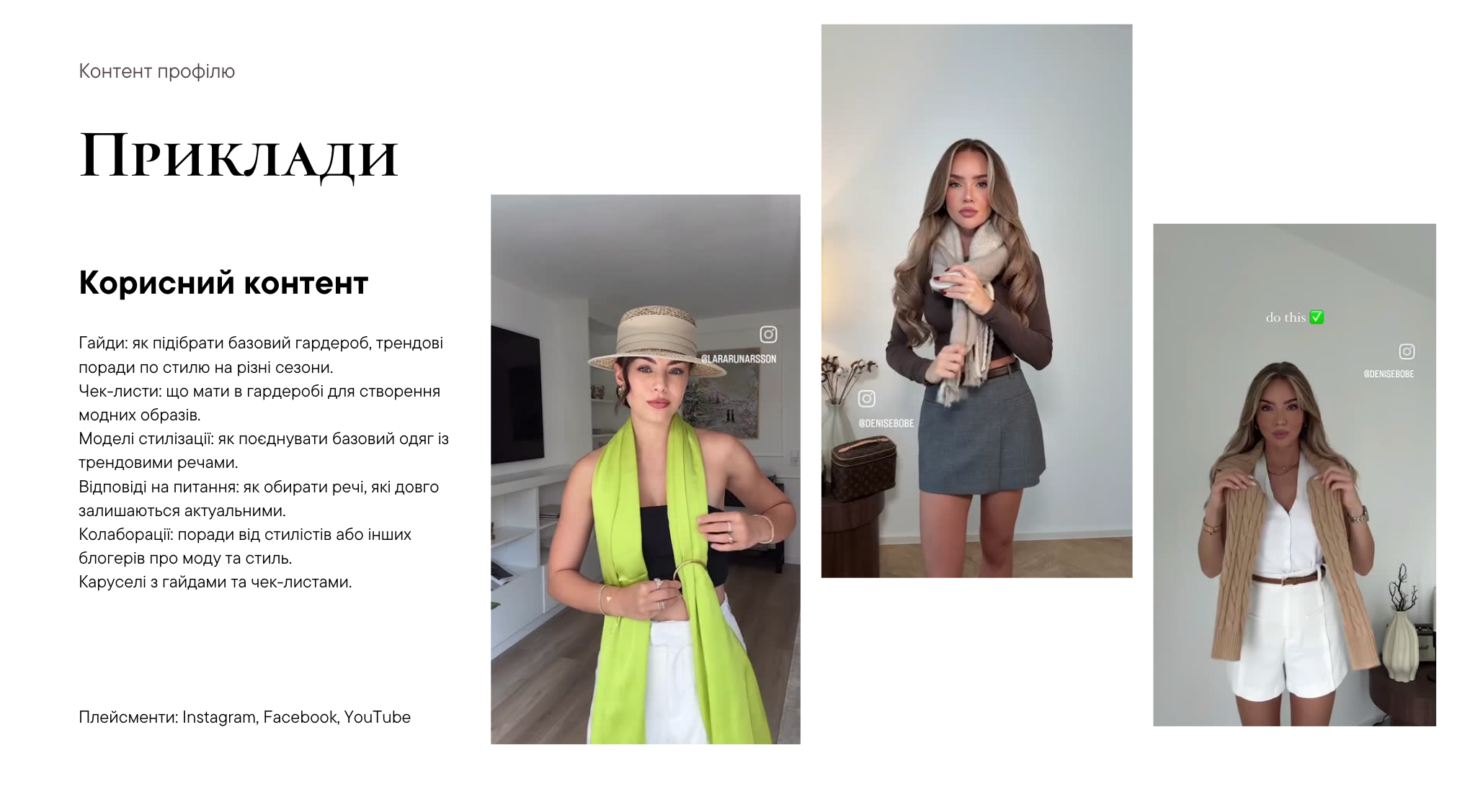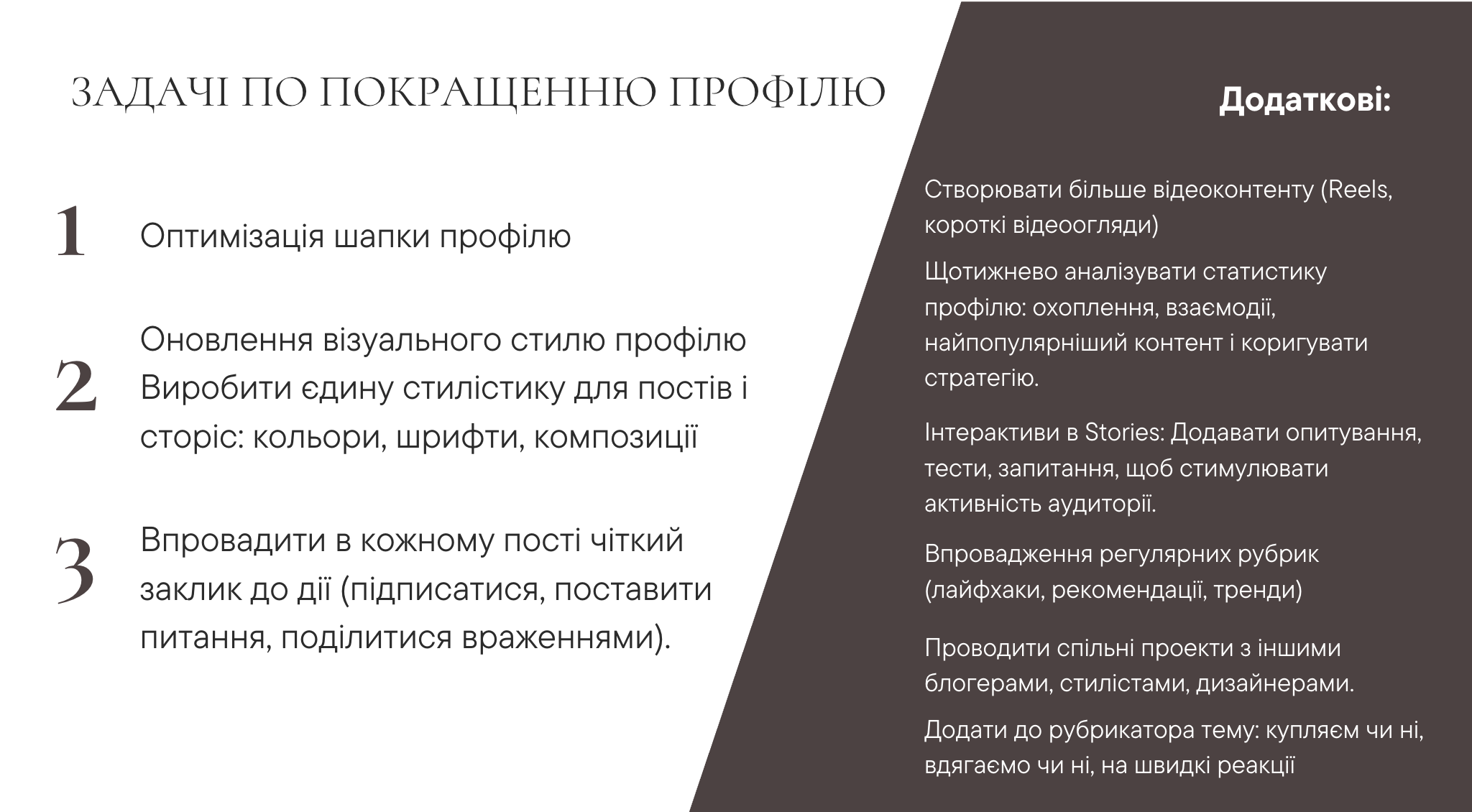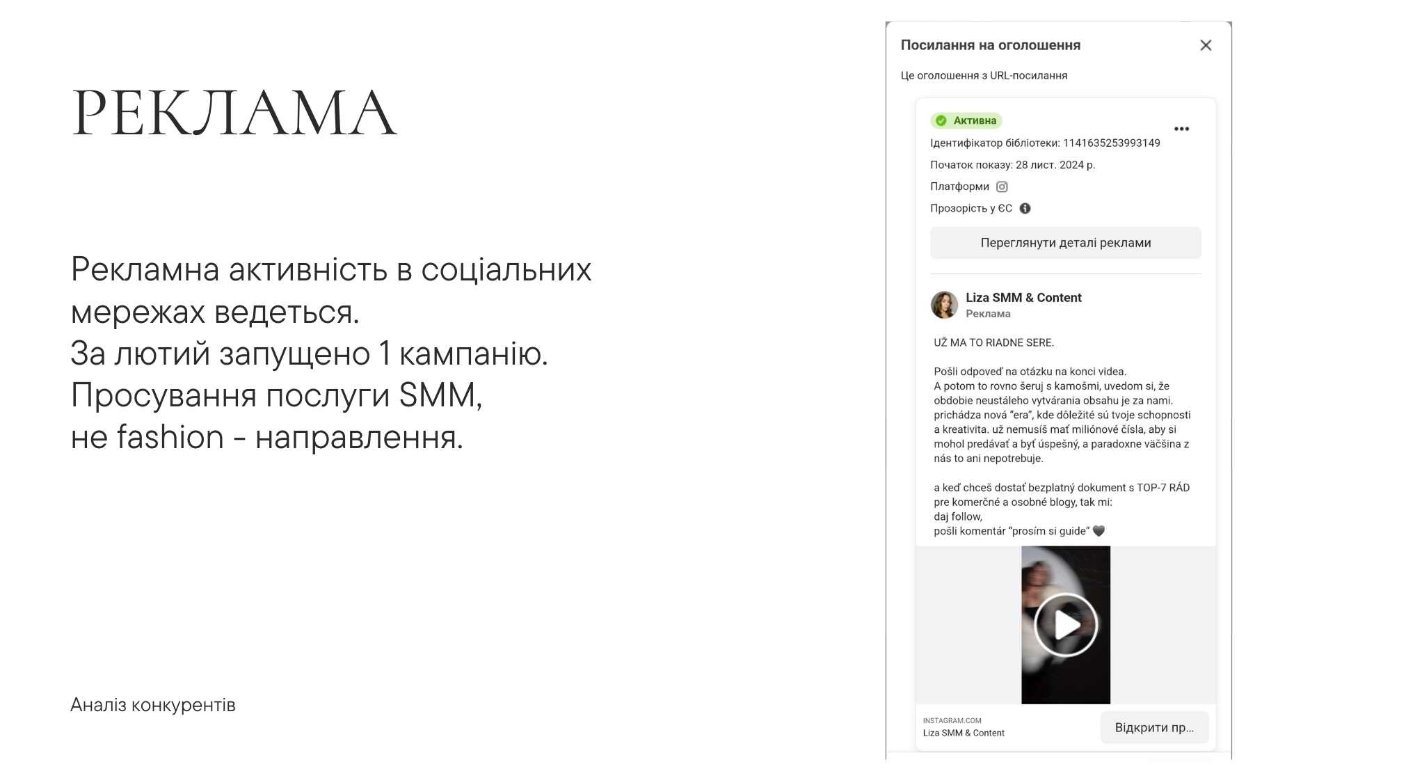 Зараз ти побачиш окремі слайди зі стратегії, яку студентка формувала для клієнта. Це не повний файл, але навіть в такому вигляді ти зможеш оцінити рівень та глибину знань випускника.