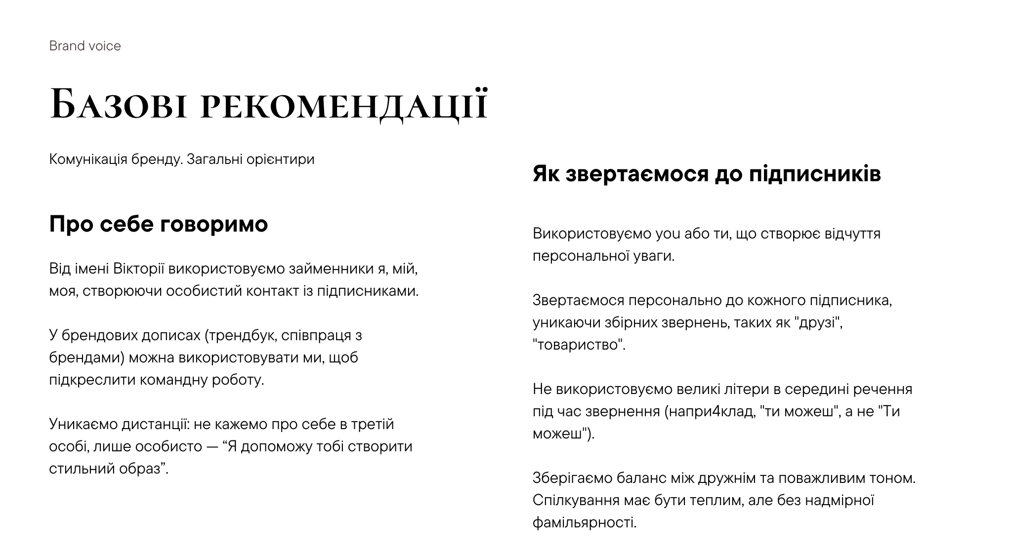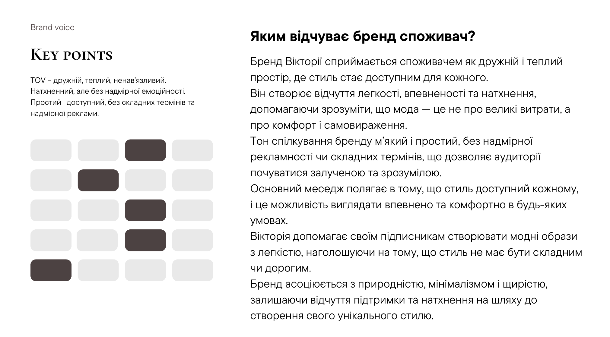 6. Розробили та описали голос бренду та додали приклади текстів, які написані голосом бренду