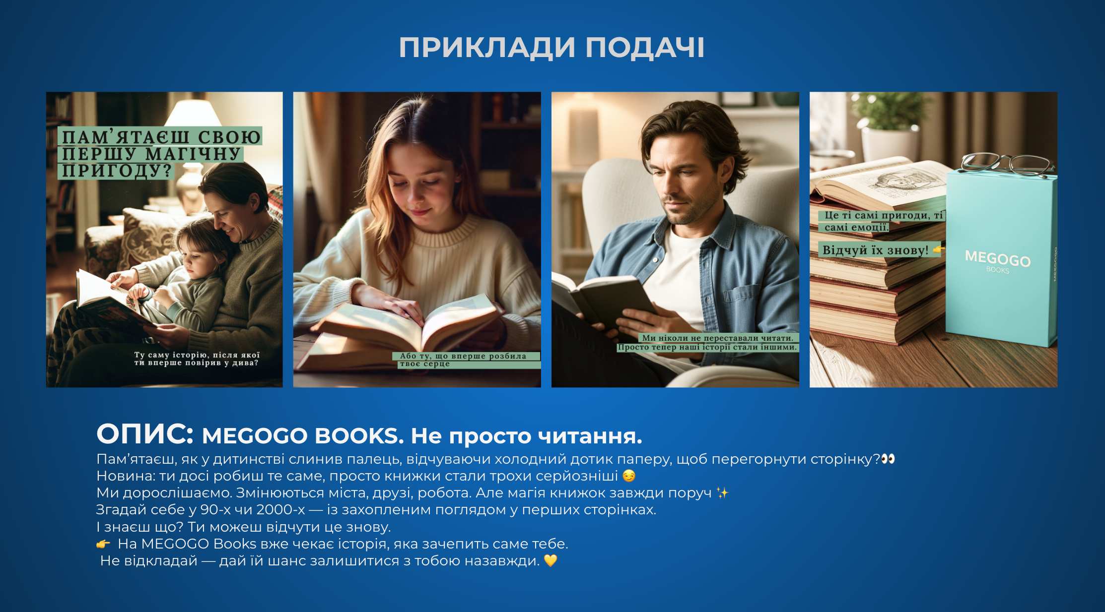 Проєкт Вікторії – MegogoBooks, онлайн-книгарня, запущена як новий напрямок у межах екосистеми міжнародного медіасервісу MEGOGO.