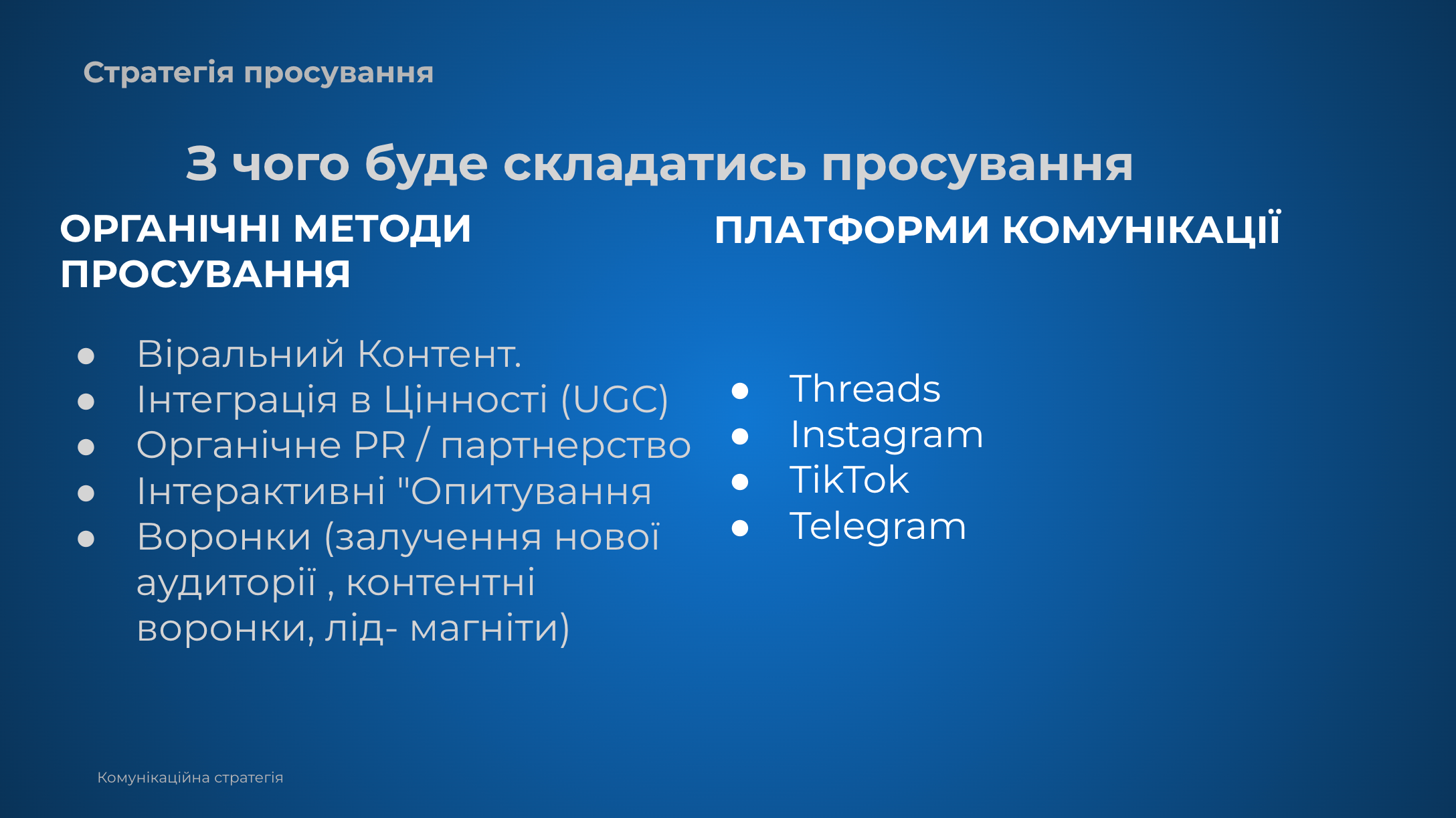 9. Прописали стратегію просування на три місяці вперед. Врахували особливості проєкту та різні способи просування