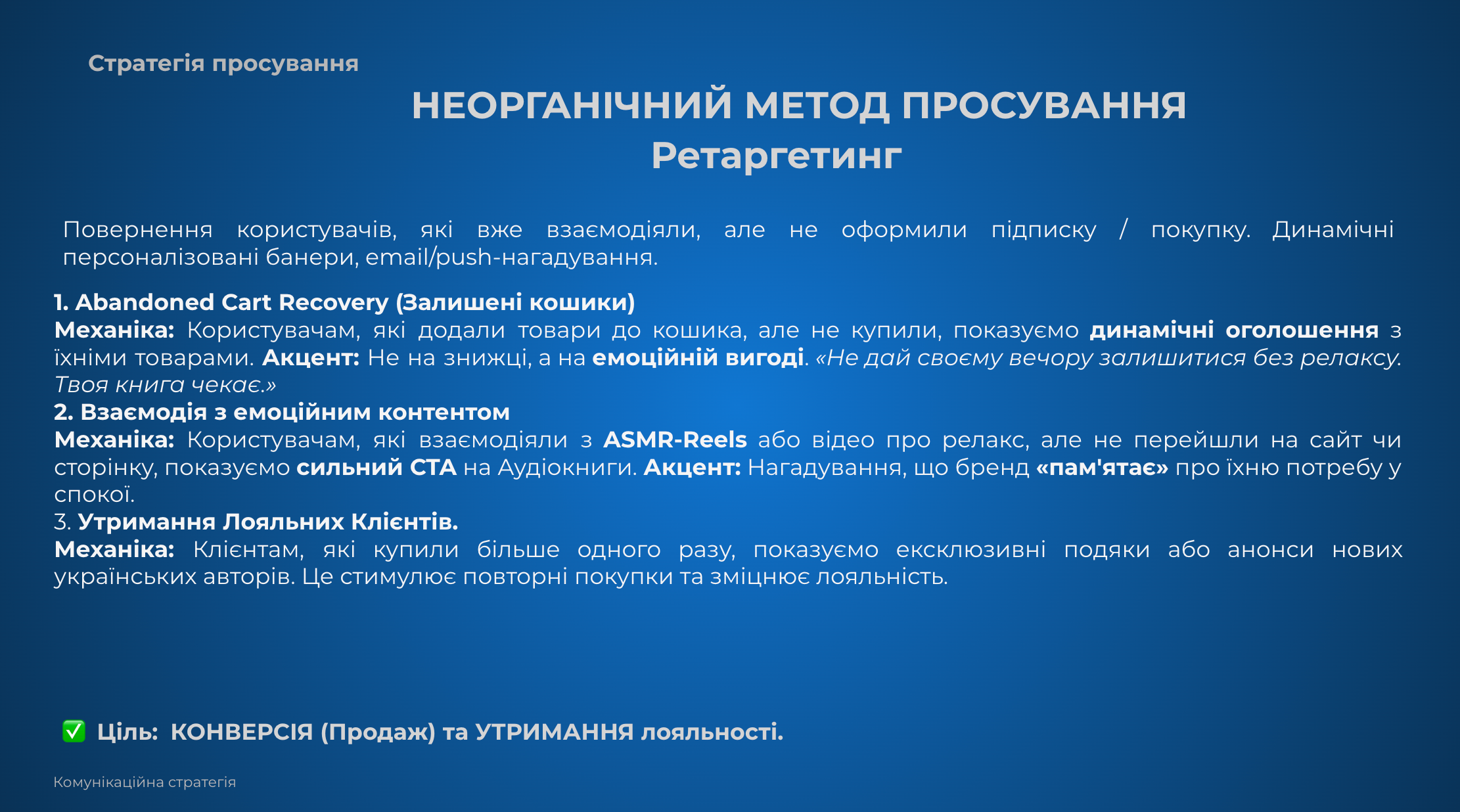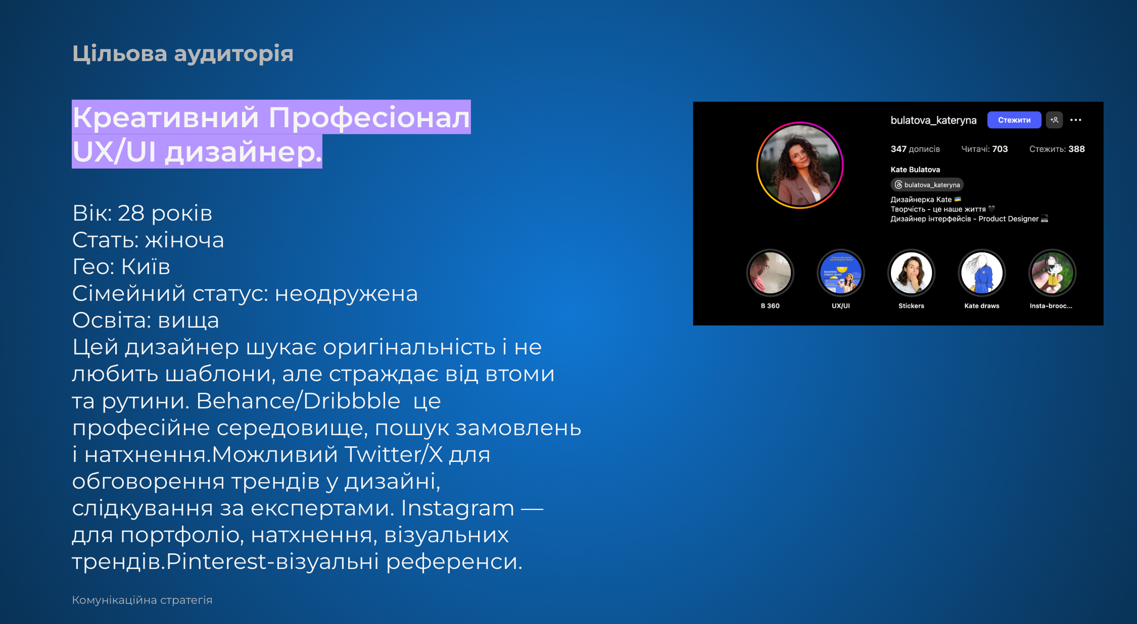 Зараз ти побачиш окремі слайди зі стратегії, яку студентка формувала для клієнта. Це не повний файл, але навіть в такому вигляді ти зможеш оцінити рівень та глибину знань випускника.